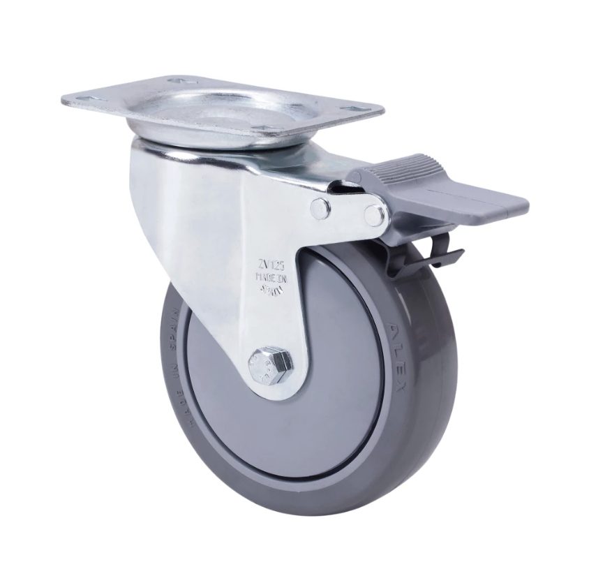 Räder mit Kern aus Polypropylen und Reifen aus grauem gespritztem Polyurethan, geeignet für Ladungen bis zu 200 kg.