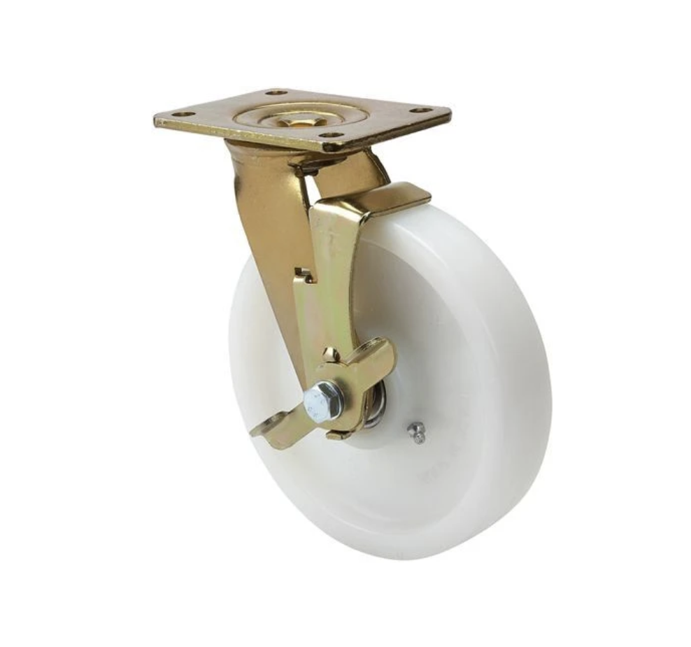 Räder aus extra starkem Nylon, geeignet für Ladungen bis zu 600 kg.