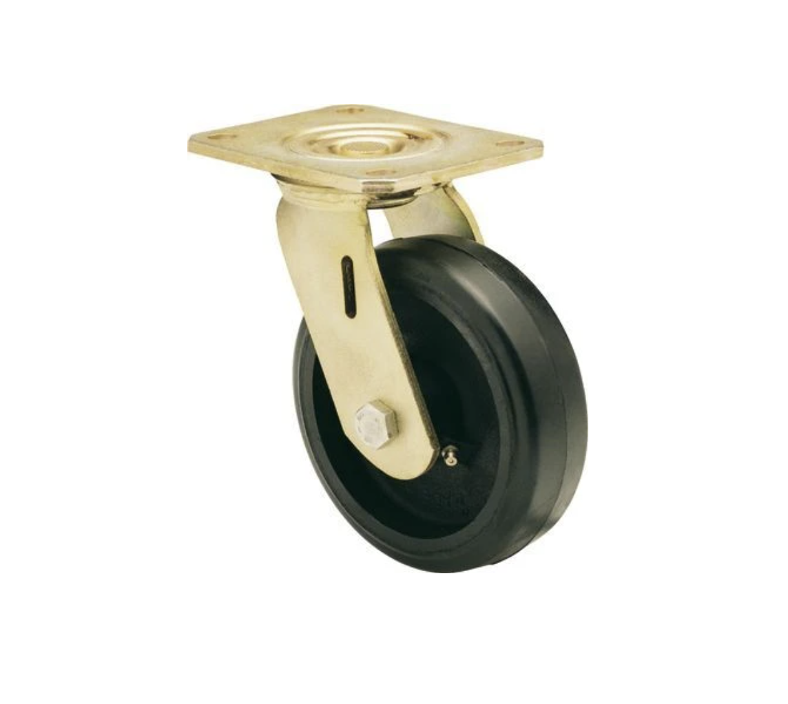 Räder mit Stahlkern und Reifen aus natürlichem schwarzem Gummi. Geeignet für Ladungen bis zu 600 kg.