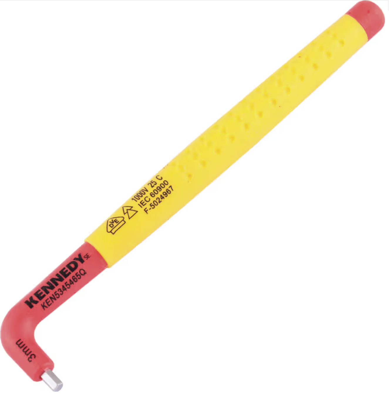 These professional-grade VDE-Insulated Hex Keys provide safe, precise control when tightening or loosening hex fasteners on live electrical equipment. The L-shaped design delivers excellent leverage and access in confined spaces, while precision-ground tips ensure an exact fit in hex socket screws to prevent damage or rounding. Built from hardened steel with durable VDE insulation, these hex keys combine electrical safety, long service life, and ergonomic comfort. Whether used individually or as part of a full set, they are ideal for electrical panels, control cabinets, and other live circuit applications.