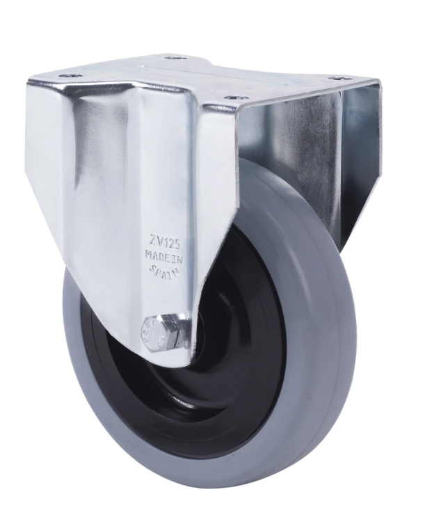 Grey rubber castors. Especially indicated to support high-loads up to 135 Kg.