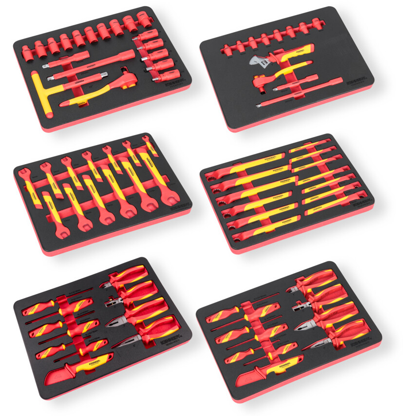 These professional-grade VDE-Insulated Hand Tool Sets are designed to provide maximum safety and reliability when working with live electrical systems. Featuring a comprehensive selection of insulated screwdrivers, wrenches, sockets, and pliers, these sets offer everything required for safe electrical installation, maintenance, and repair. Built for durability and precision, the tools combine ergonomic comfort with tough insulation to handle demanding electrical work with confidence. Each set is supplied in a robust carry case, ideal for keeping tools secure, organised, and ready for use in workshops or on-site environments.