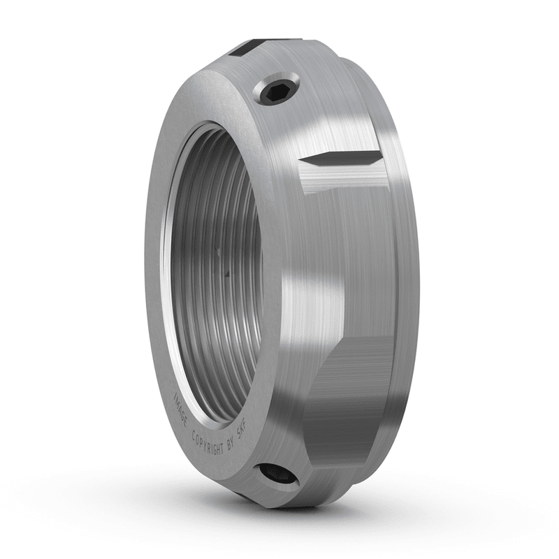 Matice KMT a KMTA jsou určeny pro aplikace, kde je požadovaná vysoka přesnost, jednoduchá montáž a spolehlivé zajištěni. Tři rovnoměrně rozmístěné pojistné koliky umožňuji přesné ustavení těchto pojistných matic v pravém úhlu k hřídeli. Mohou však byt také seřízeny tak, aby kompenzovaly mírné uhlové odchylky souvisejících součásti.