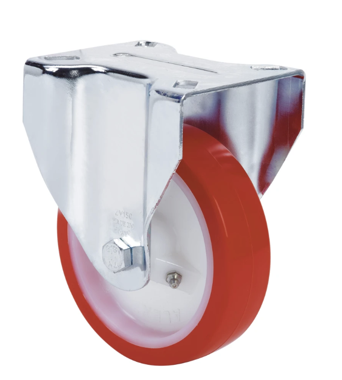 Kolieska s bielym nylonovým jadrom a červeným vstrekovaným polyuretánovým plášťom s tvrdosťou 90–95 Shore A. Určené najmä pre vysoké zaťaženie až do 400 kg.